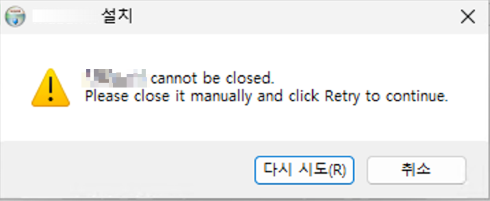 {프로그램명} cannot be closed. Please close it manually and click retry to continue. (무한 다시시도)