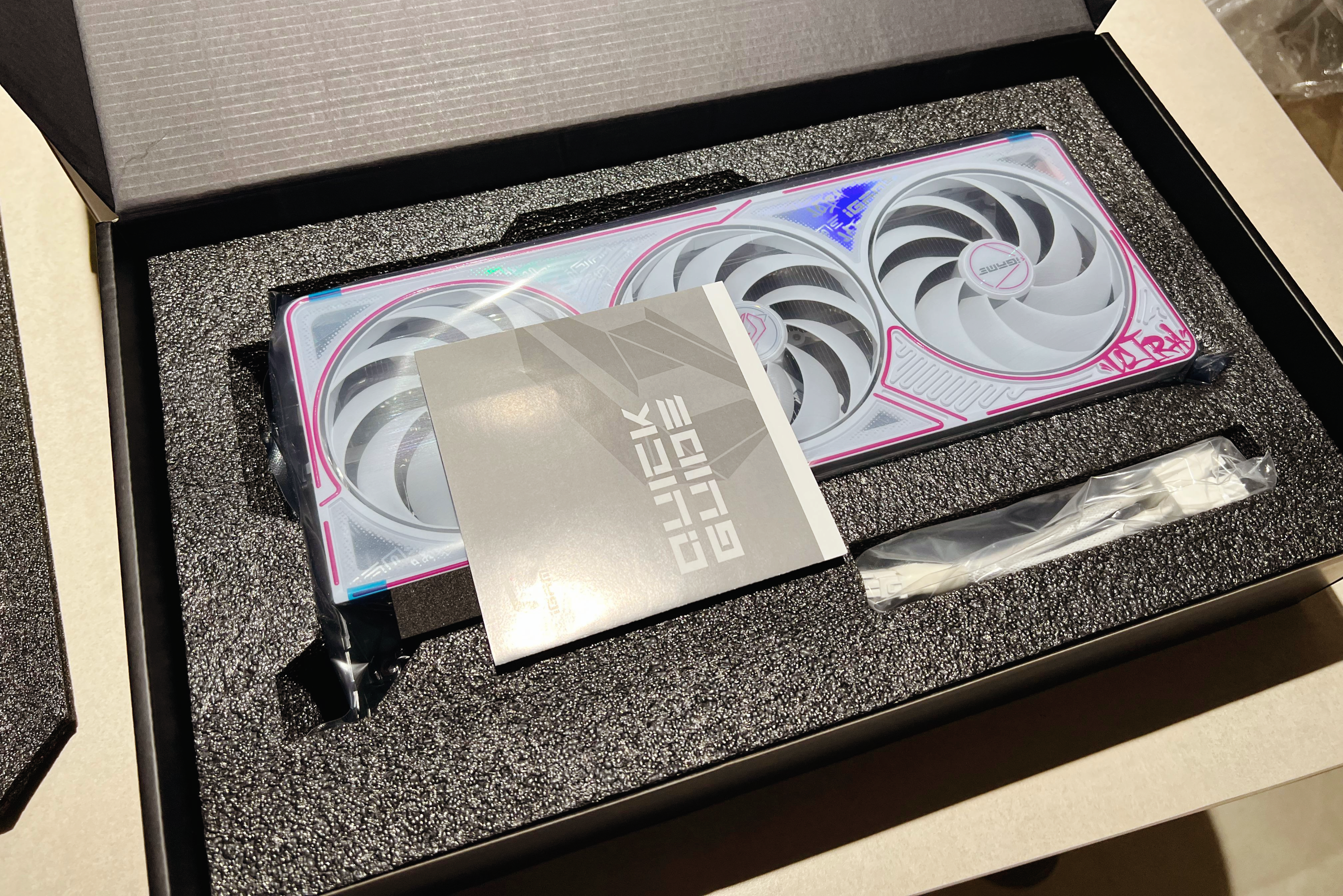 안전 스트로폼이 맞이하고 이를 들면 아래와 같이 그래픽카드와 설명서, 케이블을 볼 수 있다.