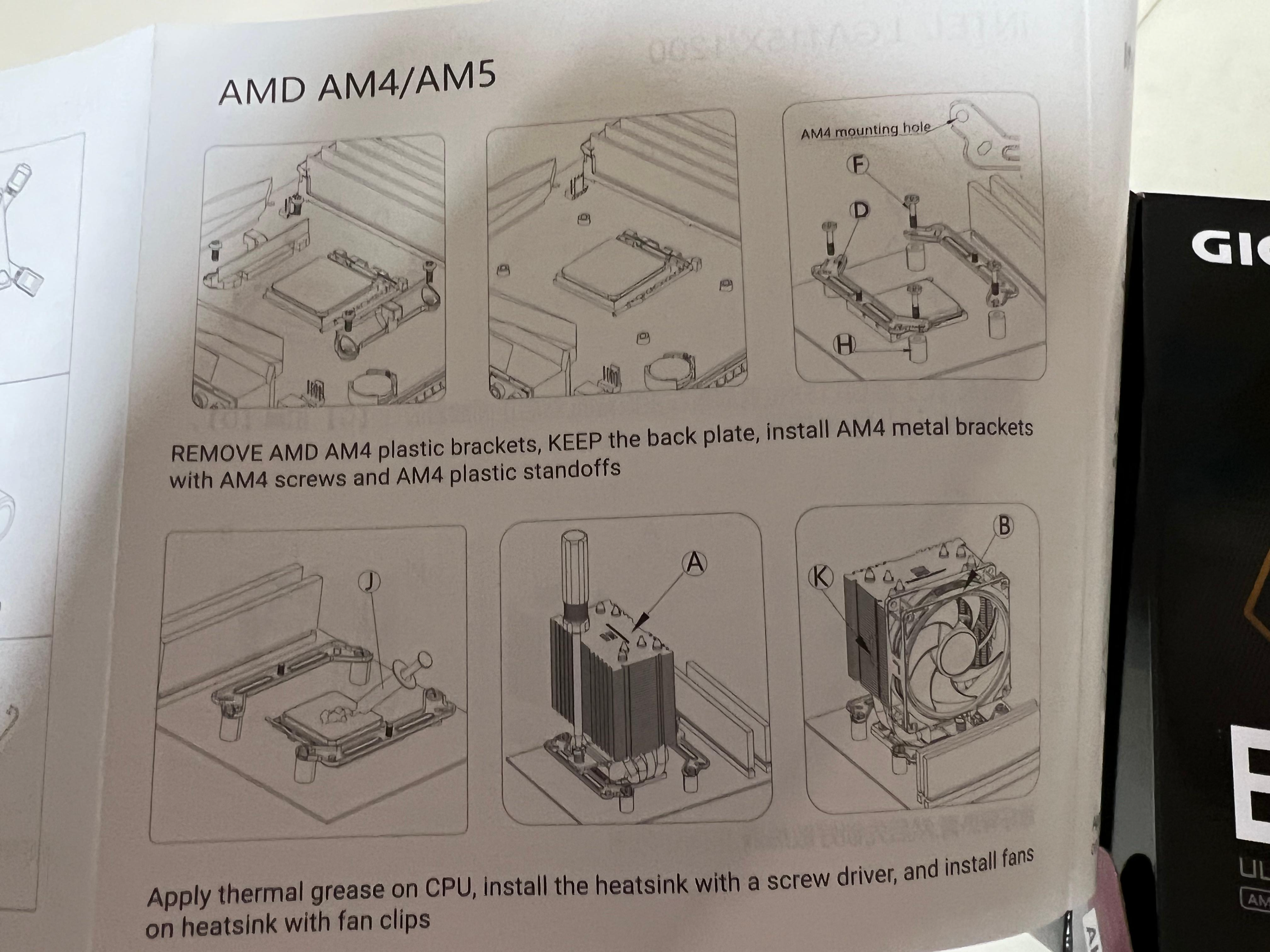 매우 간단하게 기존 플라스틱 브라켓 제거 후 그림대로 설치하고 써멀바르고 히트싱크 올리고 조인 후 팬 연결이 다 인 것 같다.