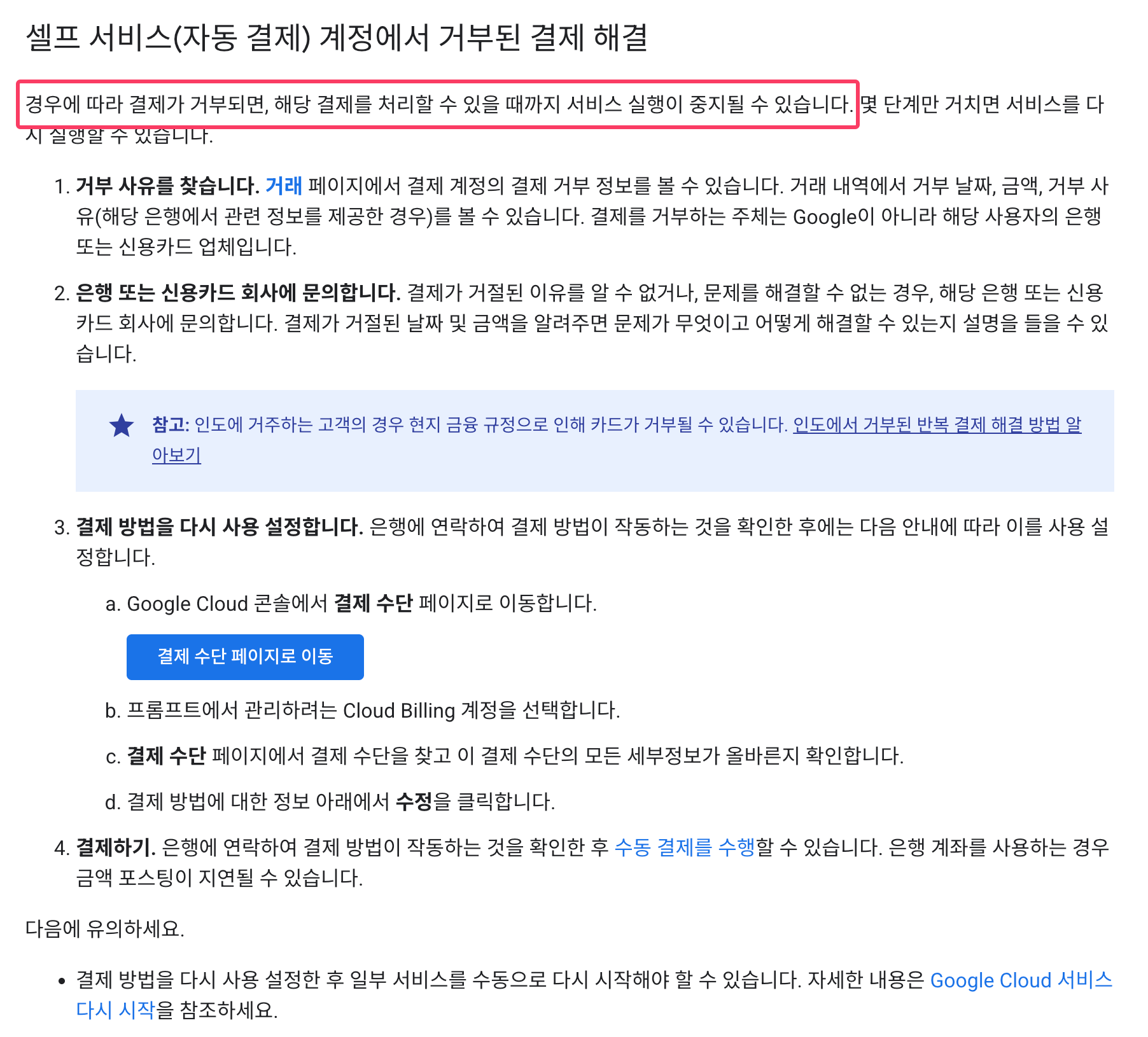 "정상적인 카드가 없으니 GCP가 서비스 제한을 걸었다"는 가설이 가장 합리적이었죠.
