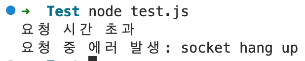 이로 인해 도메인을 찾지 못해 결국 요청이 의미 없어져 사실상 테스트결과와 같이 요청시간 초과 관련 에러를 뱉는 게 정상임을 확인했다.